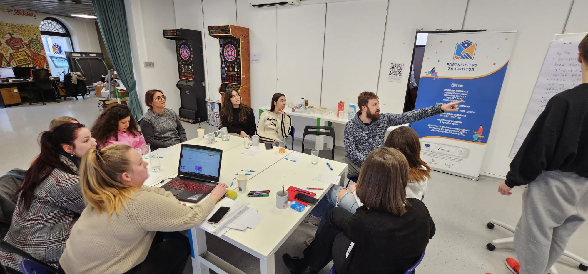 Sastanak predstavnika članica Saveza udruga osoba s invaliditetom Karlovačke županije 19. 02. 2025. Pripreme za razmjenu mladih „Mind Matters“ 17. 02. 2025. Trening pikada svake nedjelje u društvenom centru Prostorija 26. 01. 2025. Šahovski turnir „Zima na Dobri“ 15. 02. 2025. Nacionalna kviz liga u društvenom centru Prostor(i)ja 15. 01. 2025. Building Bridges with Local Community 29. 11. 2024. 1 2 3 4 5 6 7 8 9 10